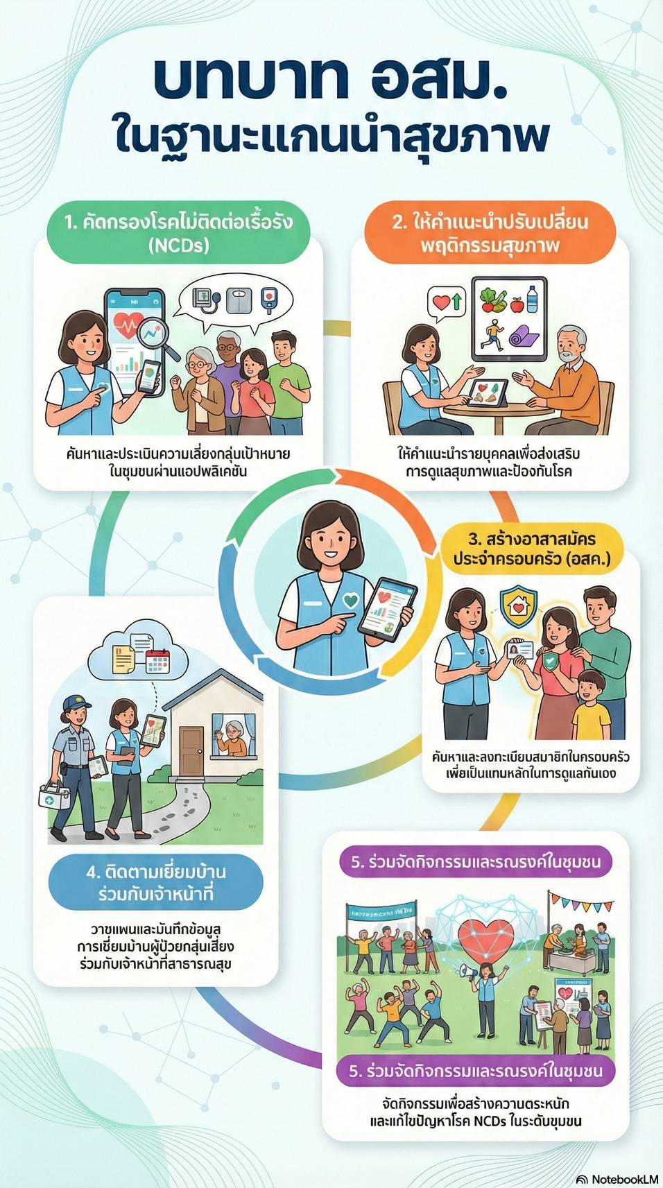 | 3 | ส่งเสริม สนับสนุน อสม.ดำเนินการต่อสู้โรคไม่ติดต่อเรื้อรัง (์NCDs) 5 บทบาท