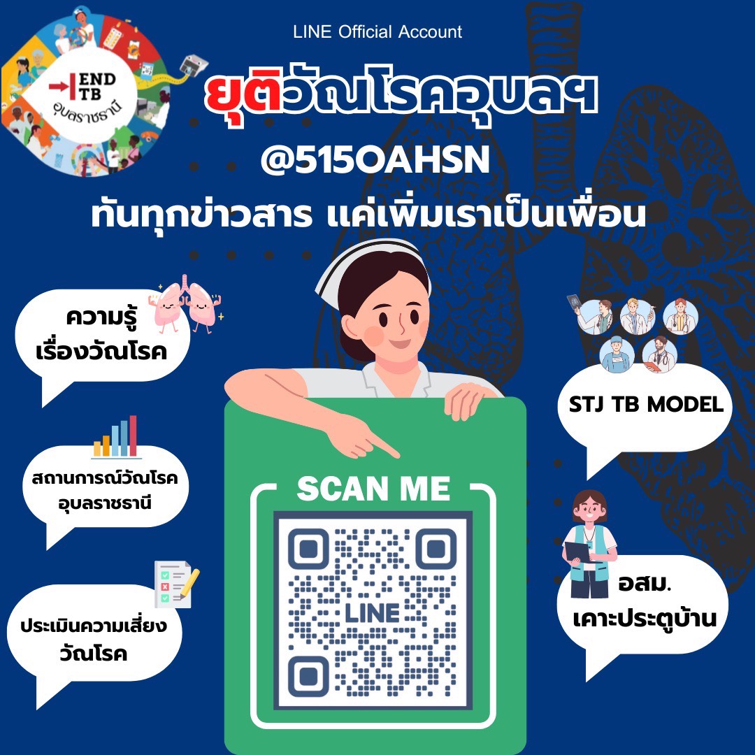 กลุ่มงานควบคุมโรคติดต่อ สสจ.อุบลราชธานี ได้พัฒนาระบบการเฝ้าระวังป้องกันควบคุมวัณโรค โดยเพิ่มการใช้ Line OA TB เพื่อให้ จนท.สธ./อสม/ ประชาชนทั่วไป/ นักเรียน/ นักศึกษา ได้ใช้งาน เพื่อเพิ่มความรู้ และสร้างความรอบรู้ด้านสุขภาพ (Health literacy) เรื่องวัณโรค ให้ประเมินความเสี่ยงด้วยตนเองได้ทุกคน