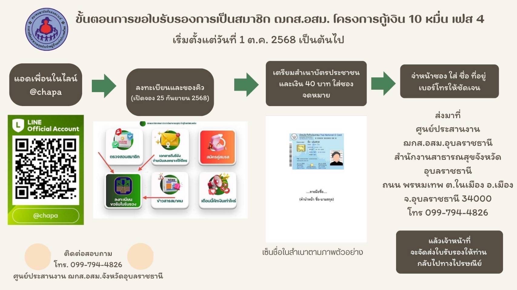 | 3 | ขั้นตอนการขอใบรับรองการเป็นสมาชิก ฌกส.อสม โครงการกู้ 10 หมื่น เฟส 4